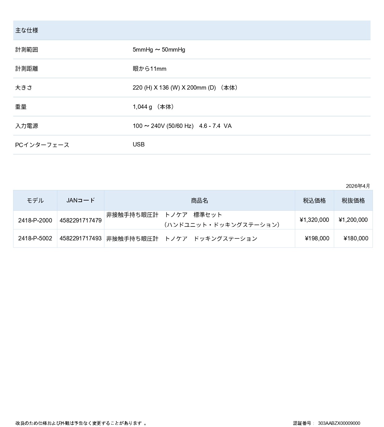 非接触手持ち眼圧計